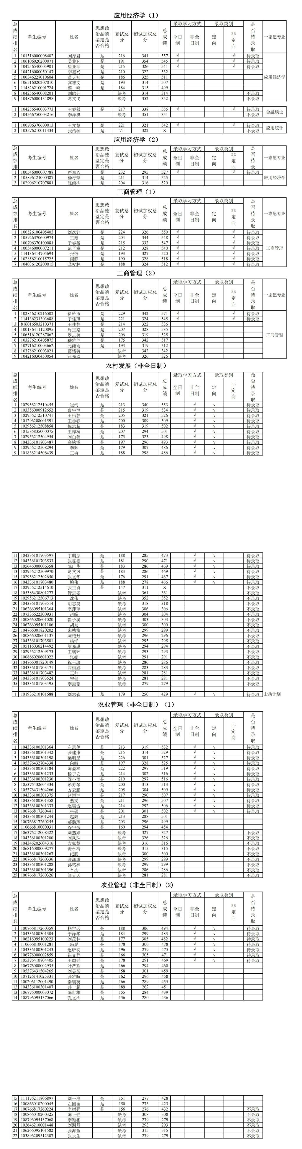 经济管理学院调剂成绩公示